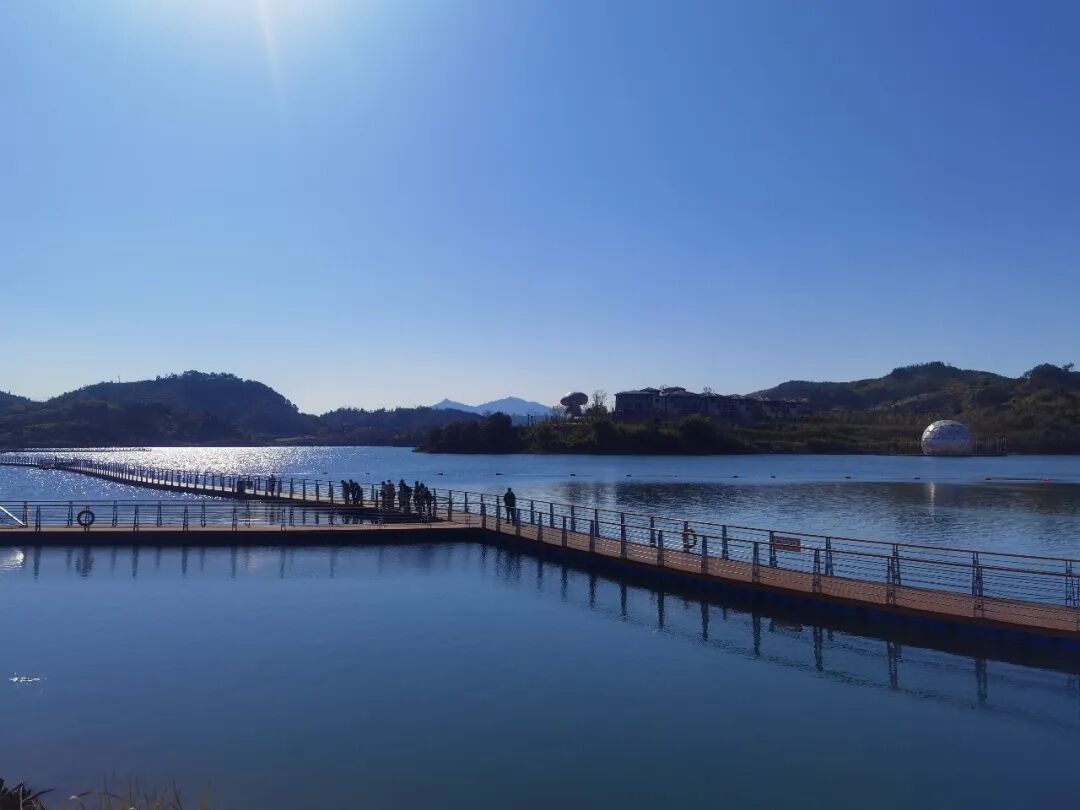 旅程的最后一站,我们来到了翠屏湖水上莲花栈道,解锁春日里的温柔时光。这条由水上栈道与木质方亭组成的景观慢道,蜿蜒于翠屏湖之上,生动展现了古田“宜居宜游”的美好环境,更诠释了古田人民“知快守慢、张弛有序”的生活态度。