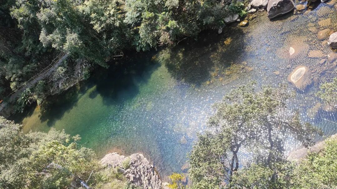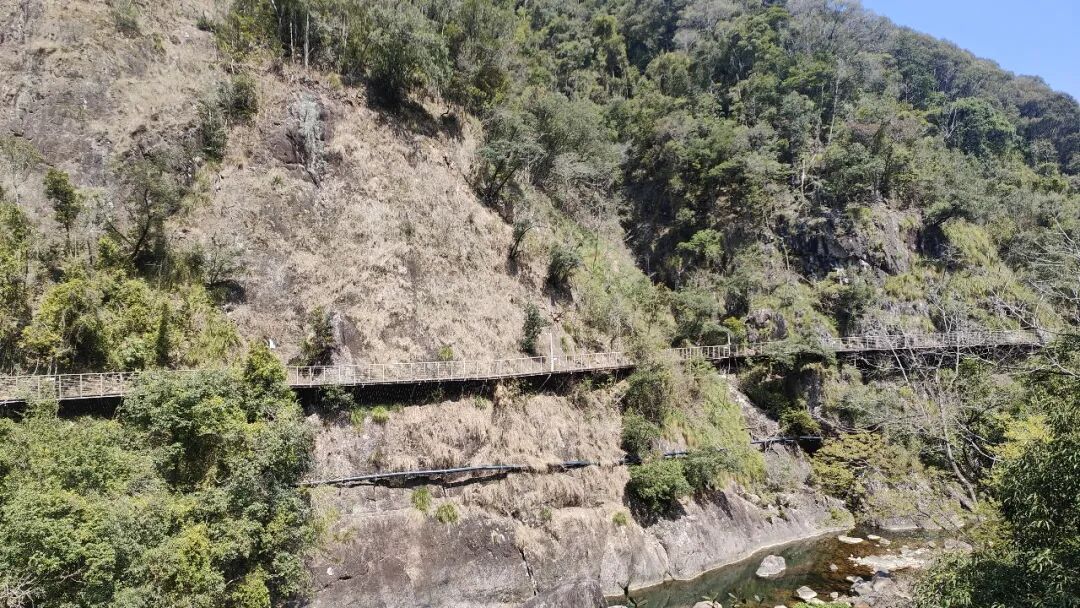 抵达景区后,我们的行程便从峡谷飞瀑步道正式开启。踏入步道的那一刻,仿佛瞬间闯入了一座天然氧吧,远离了城市的污浊,清新的空气裹挟着草木的芬芳与溪水的湿润,扑面而来,沁人心脾。深吸一口,满是负离子的气息顺着鼻腔涌入肺腑,瞬间驱散了路途的疲惫,连呼吸都变得轻盈起来。这条步道全长3公里,步道采用砖砌路基与钢结构木平台相结合的设计,行走其上稳健又舒适,既能近距离触摸自然,又无需担心路况复杂。