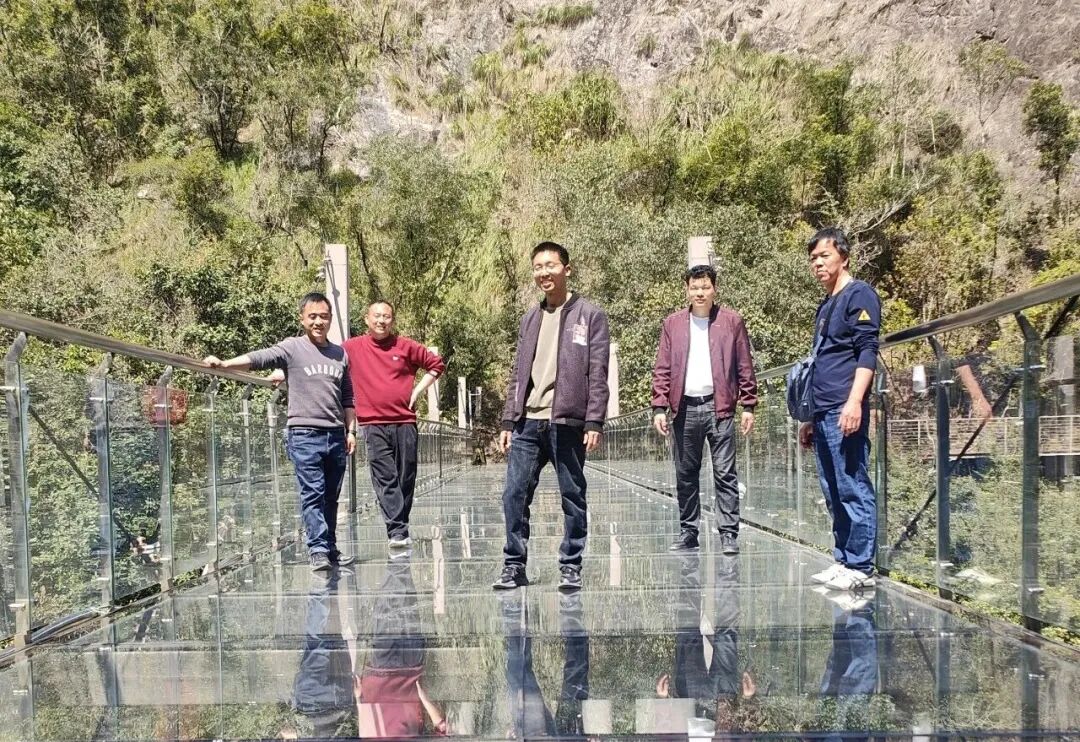 赏完峡谷飞瀑的清幽,我们便前往玻璃桥环线游步道,玻璃悬空钢桥桥长88米,宽6米,桥面全部采用透明玻璃铺设,架设于地势险峻的带状山谷之上,远远望去,宛如一道彩虹飞架在深谷之间,在阳光的照耀下熠熠生辉。踏上栈桥,伙伴们纷纷驻足打卡,定格下这难忘的瞬间,欢声笑语在山谷间久久回荡。